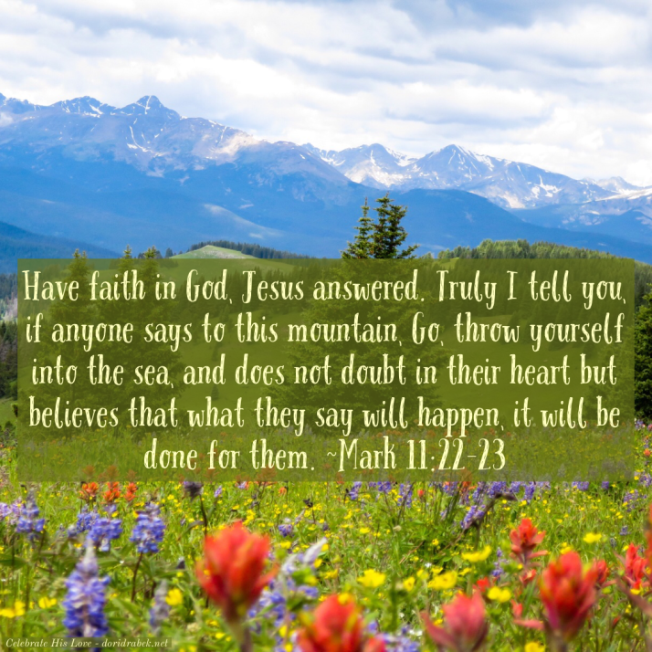 Welcome to the month of July. As you can see, the new theme for this month is faith. Wherever you are right now, whatever is going on in your life, whoever you are…I am pretty certain you can use some reinforcing verses to strengthen and encourage your walk of faith. And be encouraged even now…just knowing that even the smallest amount of faith, the size of a mustard seed to be exact, can move mountains when that faith is in our Giant God!!!